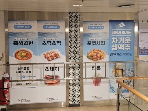 | 배 안 시설 | 푸드코너, 매점, 키즈카페, 오락실 등 |