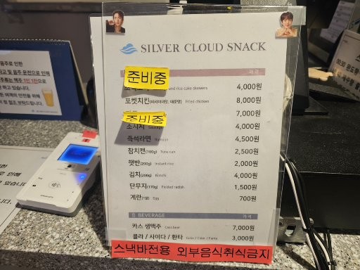 - 🍜 푸드코너: 한강라면, 소떡소떡, 치킨, 맥주, 전자레인지