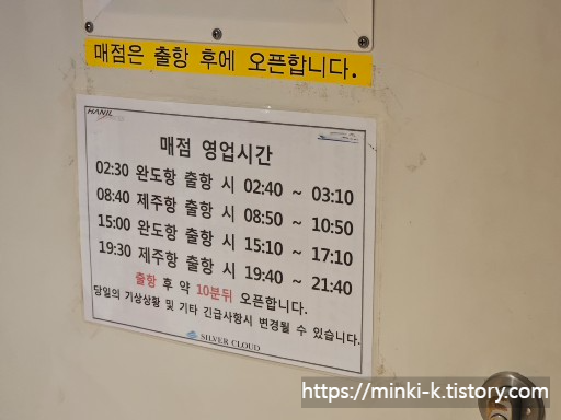 간식이나 음료는 완도 여객터미널에서 미리 준비하는 것이 좋아요.